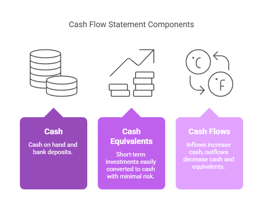 - Cash Flows: These encompass both inflows (sources) and outflows (uses) of cash and cash equivalents. An inflow increases the total cash and equivalents, while an outflow decreases it.