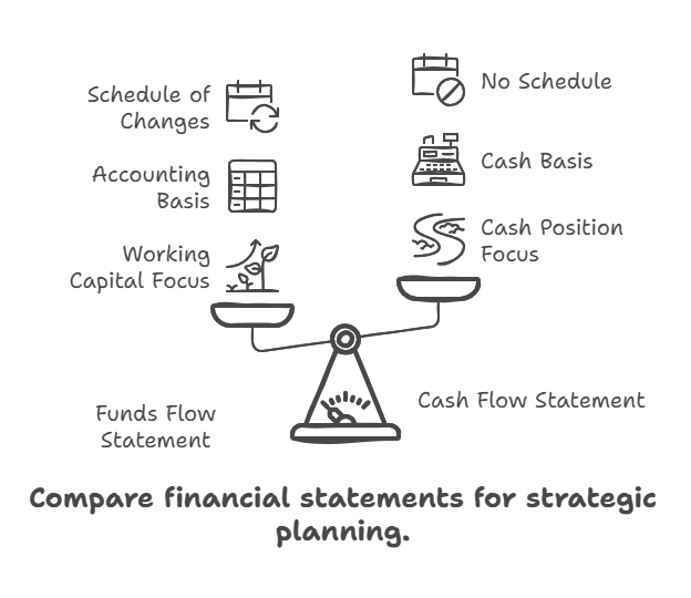 - Usefulness: Funds Flow Statement is useful for planning intermediate and long-term financing. Cash Flow Statement is more useful for short-term analysis and cash planning.