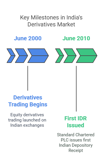 Derivatives trading in equities started in India in June 2000. At present, there are four equity derivative products traded in India: Stock Futures, Stock Options, Index Futures, and Index Options. Derivative trading is permitted on two stock exchanges in India: NSE and BSE. Currently, the derivatives market turnover is more than the cash market turnover in India. Popular interest rate derivatives in India include Interest Rate Futures or Interest Rate Options. Standard Chartered PLC was the first company that issued Indian Depository Receipt (IDR) in the Indian securities market in June 2010. While an IDR is not a derivative, it is a financial instrument related to allowing foreign companies access to the Indian market, conceptually similar to how some derivatives provide exposure to underlying foreign assets.