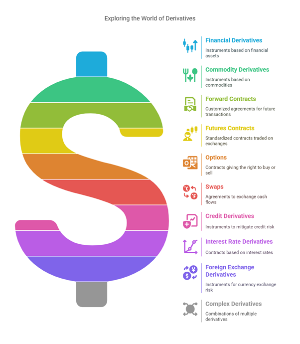 - Commodity Derivatives: These are derivatives where the underlying is a commodity. Sources mention futures for agricultural commodities.