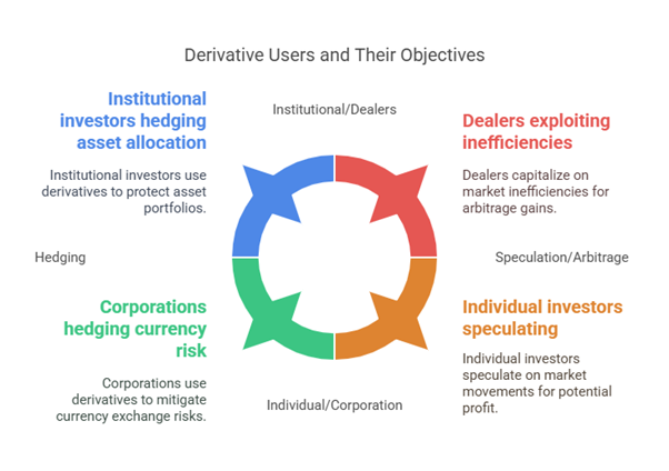 - Dealers: For hedging position taking, exploiting inefficiencies, and earning dealer spreads.