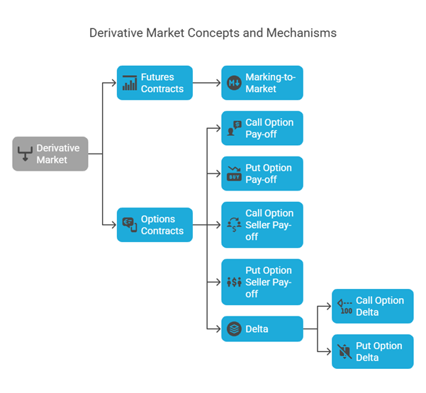 For options, the sources discuss pay-offs and “Greeks”. For a call option, the pay-off for the buyer is calculated as Max [0, Spot Price – Exercise Price] minus the premium. The pay-off for a put option buyer is Max [0, Exercise Price – Spot Price] minus the premium. The pay-off for a call seller is the mirror image of the long call. The pay-off for a short put is the mirror image of the long put.