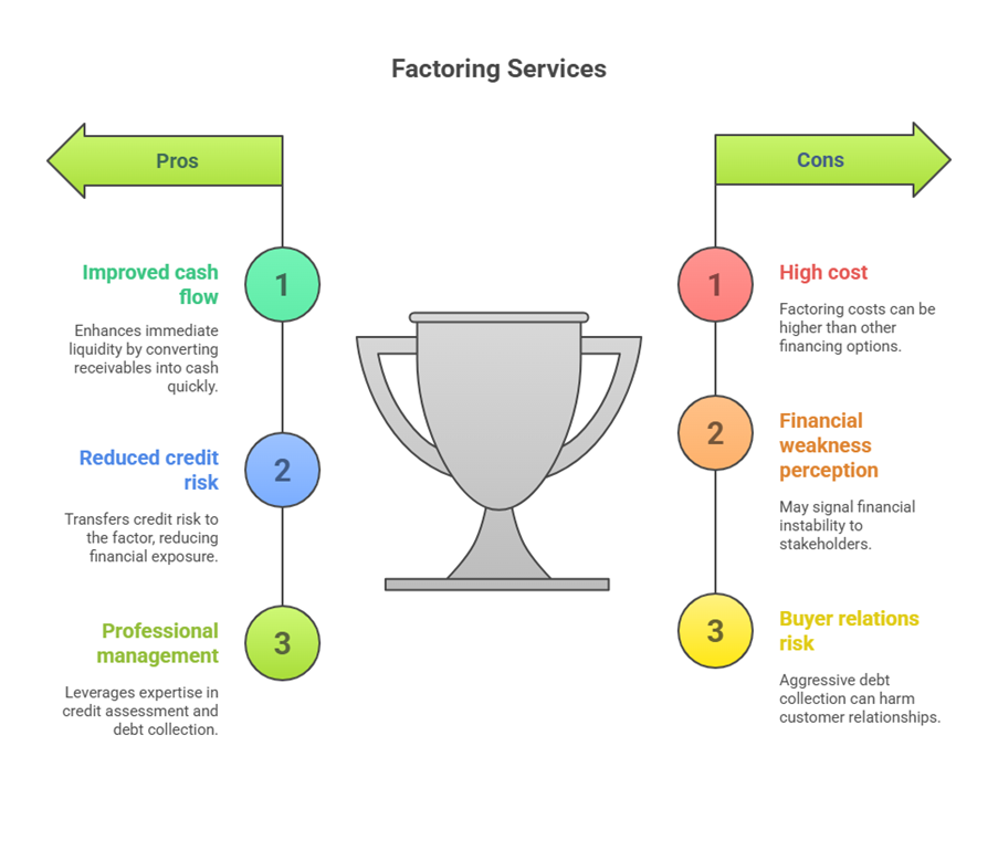- Using factoring services can create a perception of financial weakness about the firm availing the service.