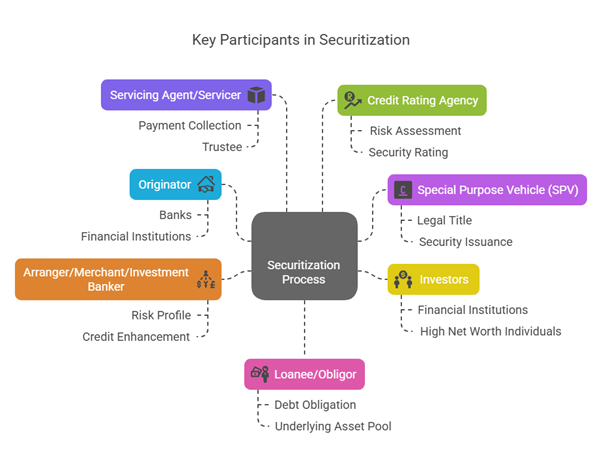 The main parties involved in securitization are: