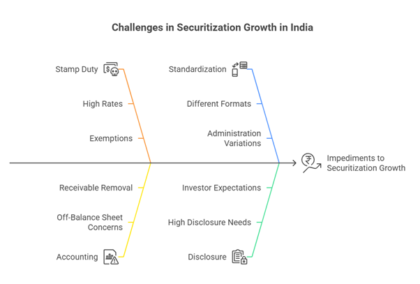 Several problems impede the growth of securitization in India: