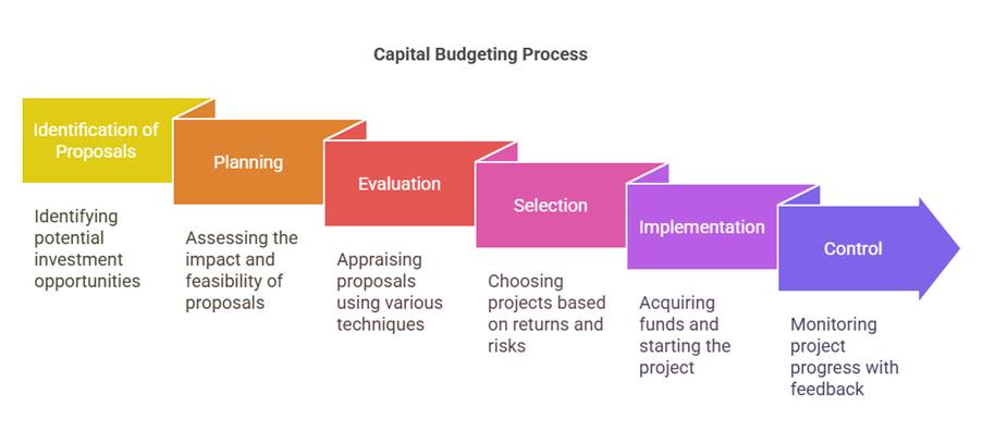 The process of capital budgeting involves several stages: