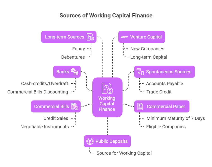 Sources of working capital finance mentioned include: